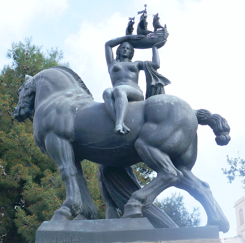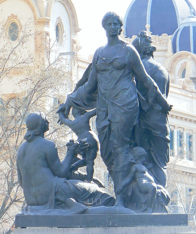 The Placa de Catalunya is famous for its ring of sculptures depicting allegories of the Provinces of Catalonia and mythological figures. Those of our company who weren’t strolling in the surrounding shopping centres, took a cultural walk around these impressive statues. Below are four examples of these art works. In order they are called…Allegory of Barcelona, Sculpture honouring the Province of Tarragona, Equestrian Statue by Luciano Osle (1925), Allegorical statues representing the Province of Lleida (1929)