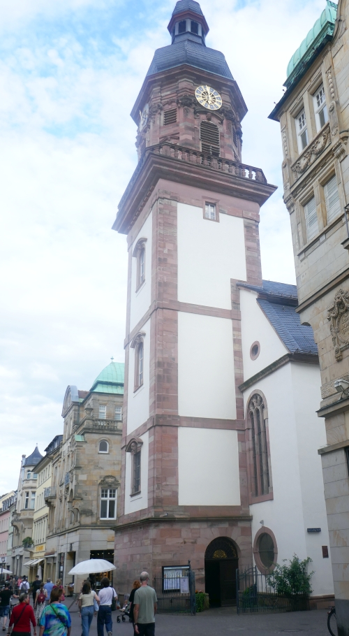 On the second day of our time in Heidelberg, we went on a guided tour of the old town and one of the places we visited was the Church of the Holy Spirit. Our guide explained that ownership of this church has been a major source of conflict over the centuries. It was originally a Roman Catholic Church but has been moved between Catholics and Protestants ten times since the Reformation. Our guide took us through a door in the centre of the long side of the church and explained that for around 300 years, a wall was placed between the nave and the choir so both Catholics and Protestants could use the church at the same time. The wall was removed in 1936 and the church is now available just for Protestant ceremonies.