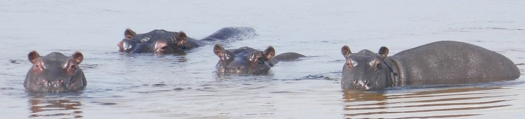 We only encountered one group of hippopotamuses on our afternoon boat ride. It appeared to me that the hippos liked to gather in friendly groups in one section of the river rather than split up and claim their own territory.