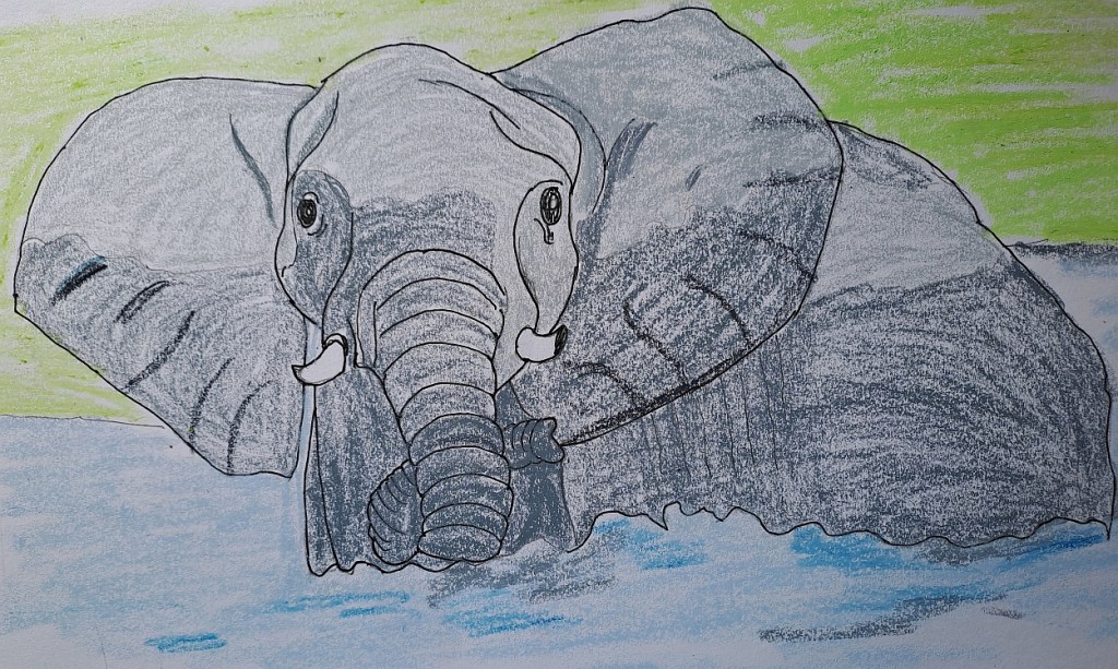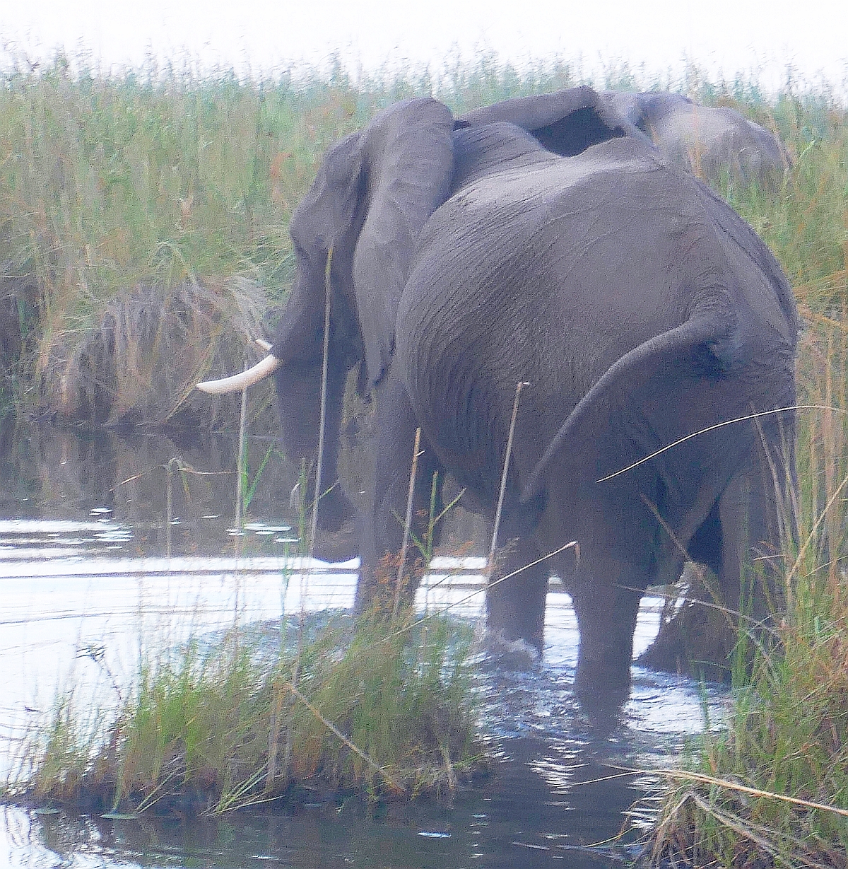 The rest of the herd quickly decided that the grass was greener on the other side of the river and they all followed their trail blazer. The centre of the river was reasonably deep so the elephants had to ‘swim’ some of the way as their feet didn’t touch the river bottom.